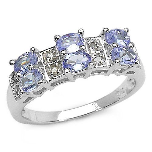 Sparkling and impressive ring featuring genuine tanzanite and diamond accents weighing 1.30 carats, finely set in luscious 10 karat white gold.
